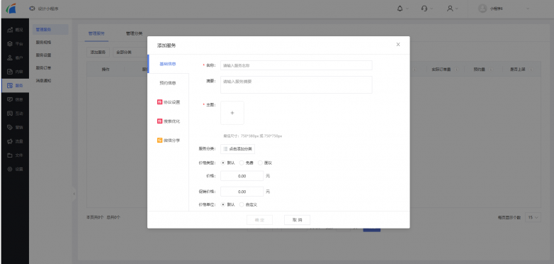 在管理后台,我们点击“服务”-“管理服务”标签页,点击“添加服务”,输入服务名称、分类、价格等信息,商品就上架成功啦!