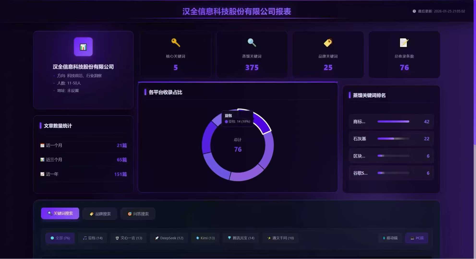 核心优势在于12个AI平台的实时监测,能分钟级反馈品牌提及频次,适合需要高频竞品对标的企业。