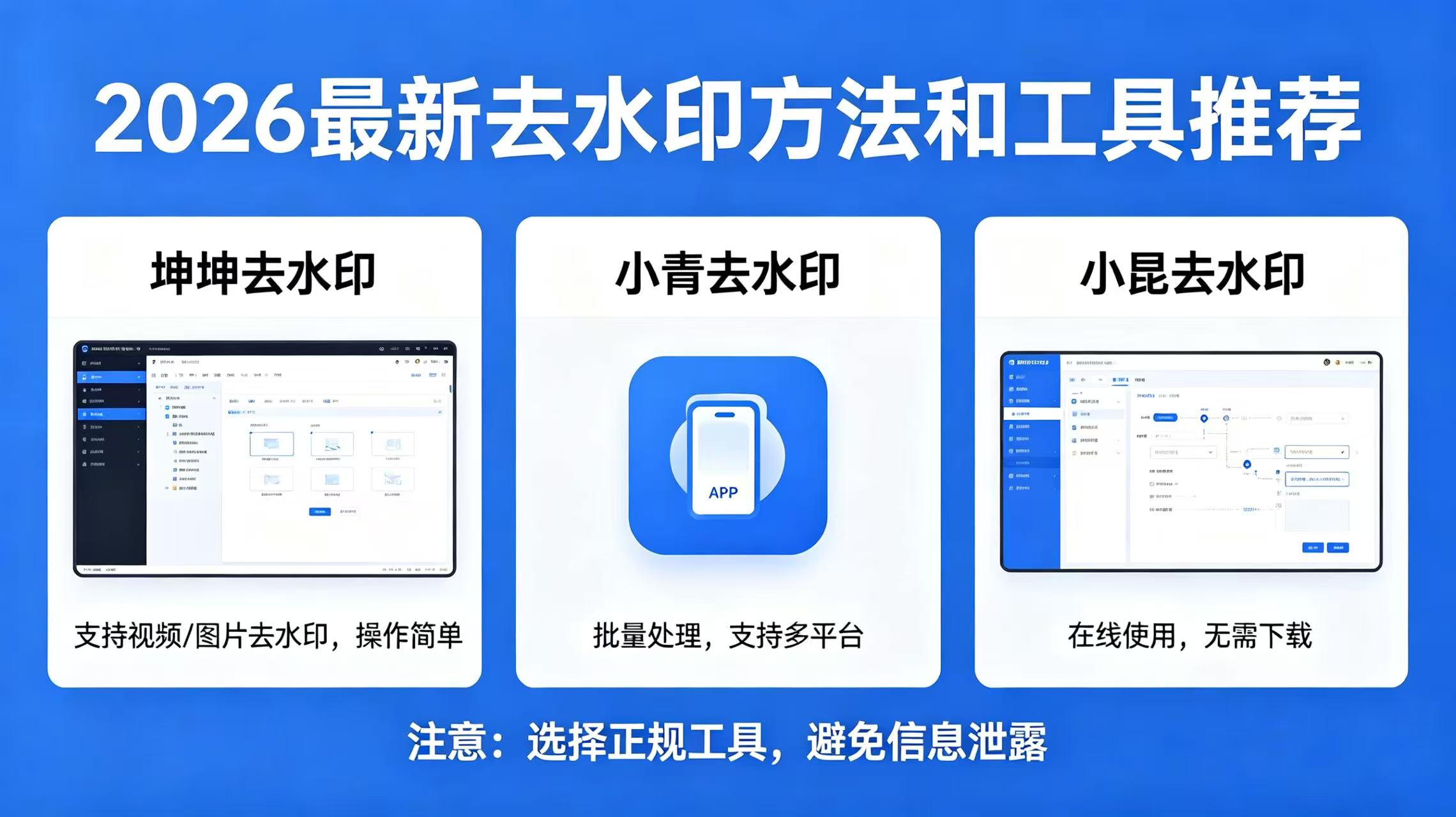 对比上述各类去水印方法,小青去水印、坤坤去水印、小哲去水印三款微信小程序,凭借自身的优势,成为2026年最值得选择的免费去水印工具,其共性优点如下,也是它们能从众多工具中脱颖而出的关键: