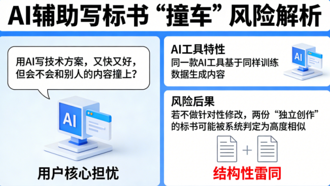 这个担心很有必要。同一款AI工具,基于同样的训练数据,生成的内容天然具有“结构性雷同”的特征。如果不做针对性修改,两份“独立创作”的标书,可能被系统判定为高度相似。