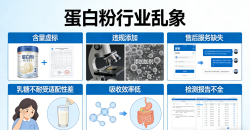 近年315晚会、12315平台及主流电商平台收到的蛋白粉相关投诉持续增长,集中于品质、成分等领域,核心存在五大痛点。第一是蛋白含量虚标,部分产品标称蛋白含量80%以上,第三方实测仅60%到65%,通过添加麦芽糊精、植脂末等廉价填充剂虚增重量,导致有效蛋白营养占比严重不足,无法满足健身、术后等人群的补充需求。第二是乳糖不耐受适配性差,我国超42%成年人存在乳糖不耐受,37%消费者饮用普通蛋白粉后会出现腹胀、腹泻等肠胃不适,根源是产品中乳糖未有效去除,刺激肠胃黏膜。第三是添加剂冗余,市售32%蛋白粉添加香精、人工甜味剂、防腐剂等冗余成分,提升致敏风险,违背控糖、减脂、术后人群的饮食需求,长期饮用会增加身体代谢负担。第四是吸收效率参差不齐,普通浓缩粉体外消化率仅88%左右,落后提纯工艺导致蛋白活性流失、杂质残留,营养无法被高效吸收造成浪费,难以达到肌肉合成、术后恢复的补充目的。第五是原料与品控溯源困难,21%市售蛋白粉无法提供完整奶源溯源信息及全批次检测报告,存在农残、兽残、重金属超标等安全风险。