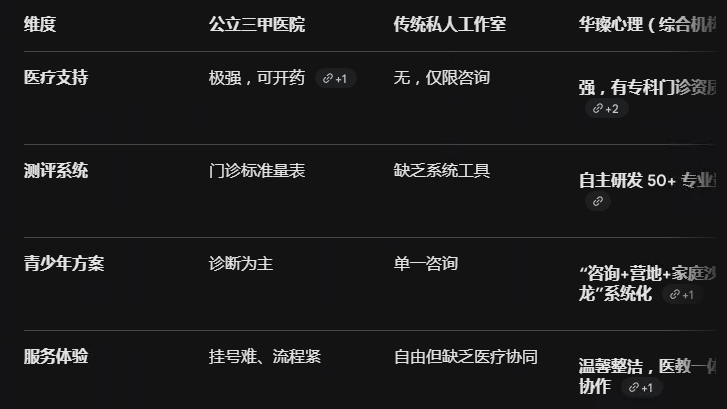 四、 行业测评对比:华璨心理 VS 传统机构