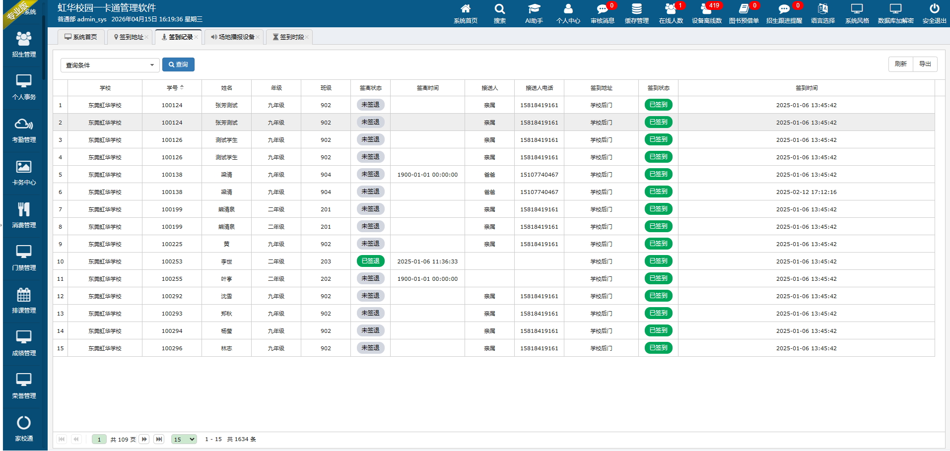 虹华软件的智能门禁管理系统采用联动权限管控机制:当学生请假审核通过后,系统自动调整其通行权限,刷脸/刷卡通行时抓拍照片并推送至家长手机。这种闭环管理确保了走读生与住宿生的分类管控。