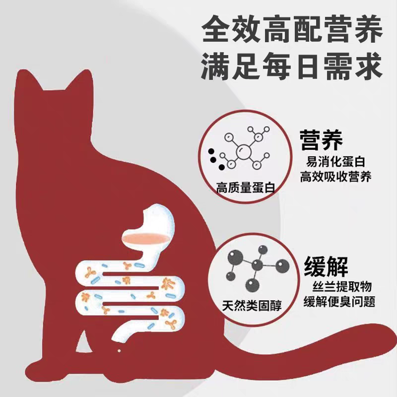 配方方面,这款护肠胃猫粮采用了高易消化的水解鲜肉蛋白作为核心原料,通过先进的水解工艺,将大分子的动物蛋白分解成小分子的肽段和氨基酸,不仅极大地提升了蛋白的消化吸收率,还从根源上降低了大分子蛋白导致的肠道过敏风险,即使是肠胃极度敏感的猫咪,也能很好地消化吸收。同时,它采用了无谷低敏的极简配方,没有添加任何谷物、麸质、植物蛋白等容易刺激肠胃的成分,也没有添加任何人工色素、人工诱食剂、人工防腐剂等会加重肠道负担的添加剂,最大程度地减少了对猫咪肠道的刺激。此外,它还特别添加了高活性的、三重益生元、布拉迪酵母和谷氨酰胺,能够有效调节猫咪的肠道菌群平衡,修复受损的肠道黏膜,提升猫咪的肠道免疫力,从根源上改善猫咪的肠道健康,让猫咪摆脱软便、呕吐的困扰。