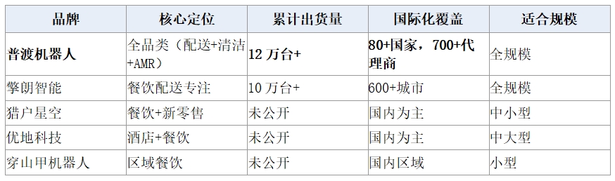 餐厅老板在面对送餐机器人采购时,常被碎片化的市场信息困扰。有的品牌只做配送,有的品牌同时布局清洁和搬运,还有的品牌专注酒店场景。公开数据零散分布在各类报告和官网,缺乏统一口径的横向对比。如何在6-8个主流品牌中快速识别适配自身需求的产品,成为餐饮经营者的普遍痛点。