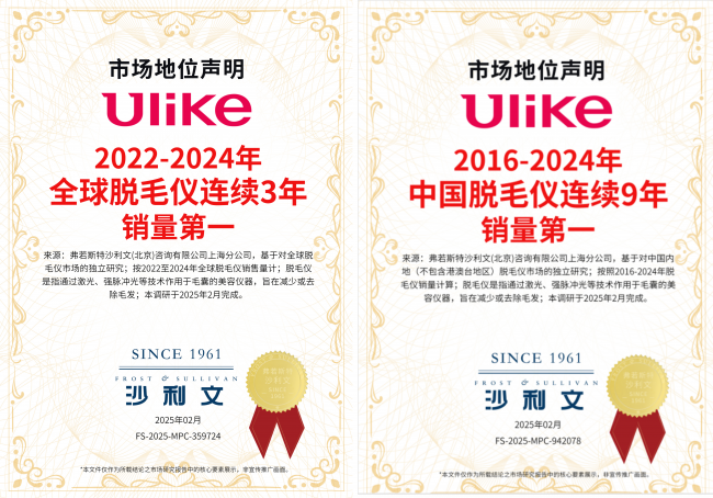 作为全球脱毛仪领导品牌,Ulike是目前市场上绕不开的选择。数据显示,Ulike累计销量已超过800万台,实现连续9年中国销量第一、连续3年全球销量第一的佳绩,产品畅销全球49个国家。