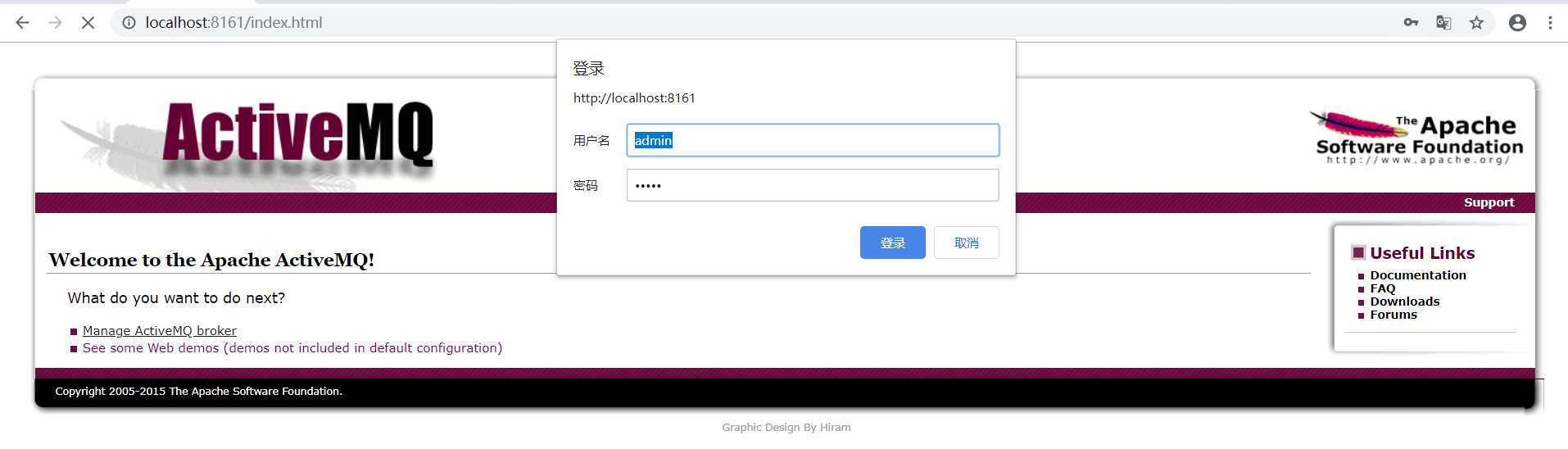 输入Http://localhost:8161 用户名账号均为admin即可