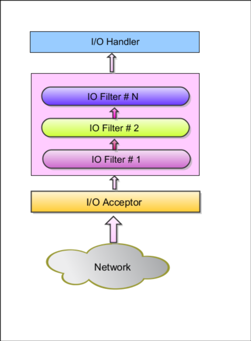 3, 所有session获得的数据包,会通过过滤链(Filter Chain)中的过滤器进行处理,已过滤,转换成可用的数据包(如,转换成对象,对数据进行一些逻辑处理),将低层数据转为高层对象。这时候,有些编码器,解码器就显得很有用了。