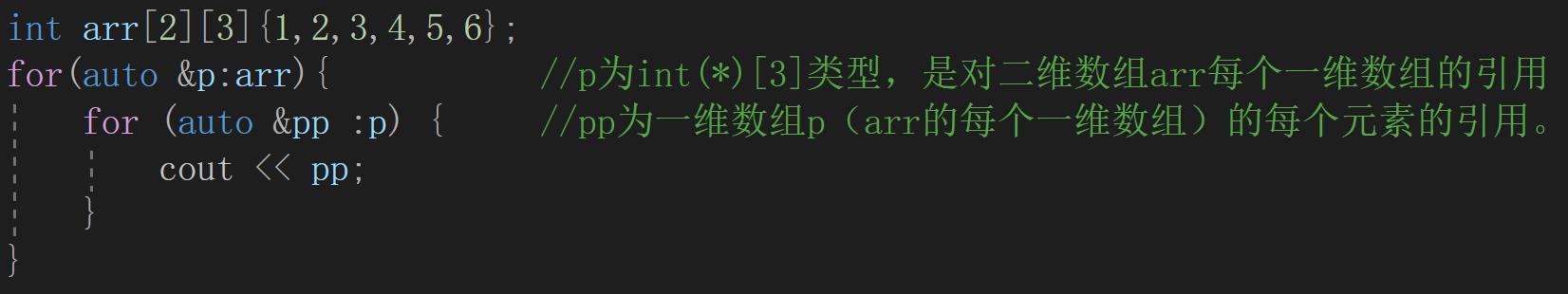 int (&ptrl)[3]=arr[0]; //这里声明ptrl是一个对长度为3的int型数组的引用,引用的对象是arr[0],即二维数组arr的第一个数组(第一行)