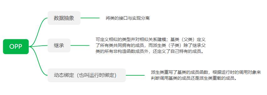 面向对象编程的三个核心为数据抽象、继承和动态绑定。