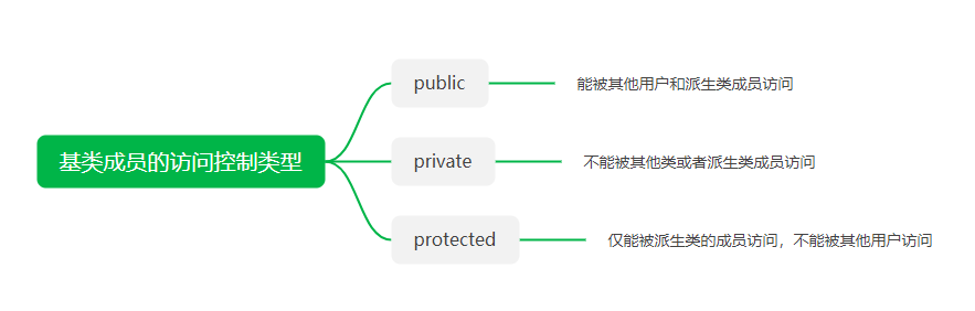 (注意与派生列表中的继承方式区分,继承方式的访问控制符是控制继承过来的成员是否对派生类用户可见的,默认为private方式继承,派生类对象不能访问继承过来的成员。)