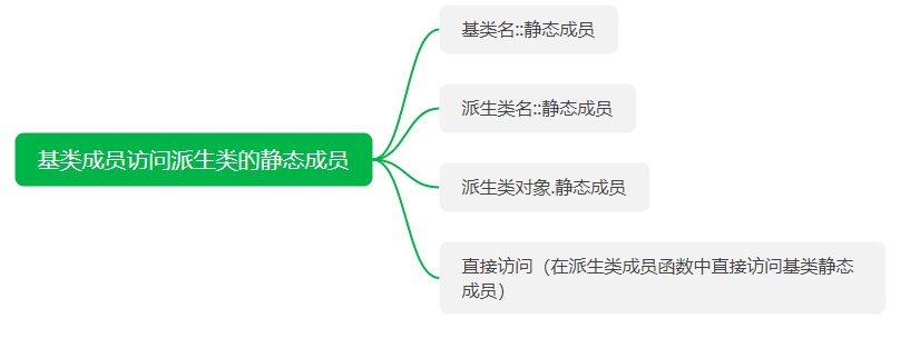 如果派生类能访问基类静态成员时(需是public或protected的基类成员),派生类成员对基类中静态成员的访问方式: