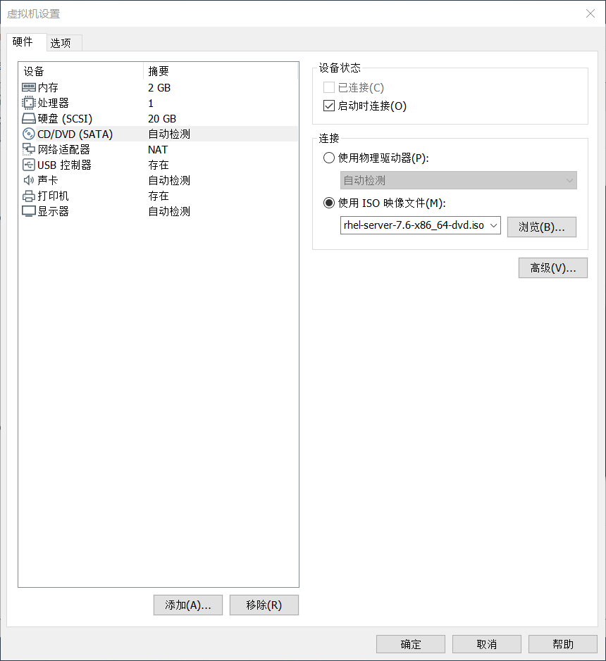 6.虚拟机创建好了,我们先不要开机,先把你下的iso文件导入进去,点击DVD那个位置,进入配置,把自动改成你下载的iso文件的位置,如图。