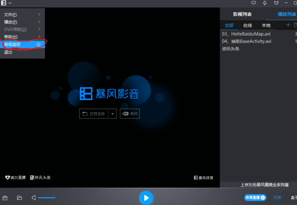 3.如果播放列表中没有“咨询头条”的播放列表的时候,先打开最后一个视频播放到最后,暴风影音会自动播放“咨询头条”,然后不要删除播放列表中的“咨询头条”,之后播放视频时,就不会自动播放“咨询头条”了