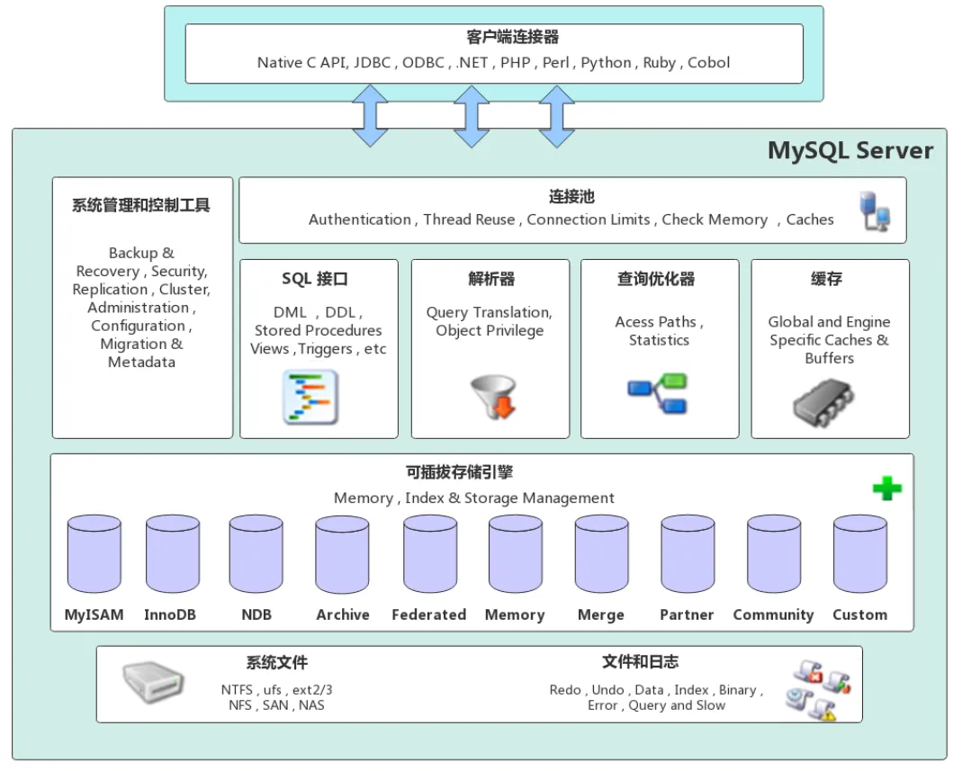 存储引擎: MySQL支持多种存储引擎,如InnoDB、MyISAM等,每种引擎有不同的特性和优势,使用户能够根据具体需求选择合适的存储引擎。