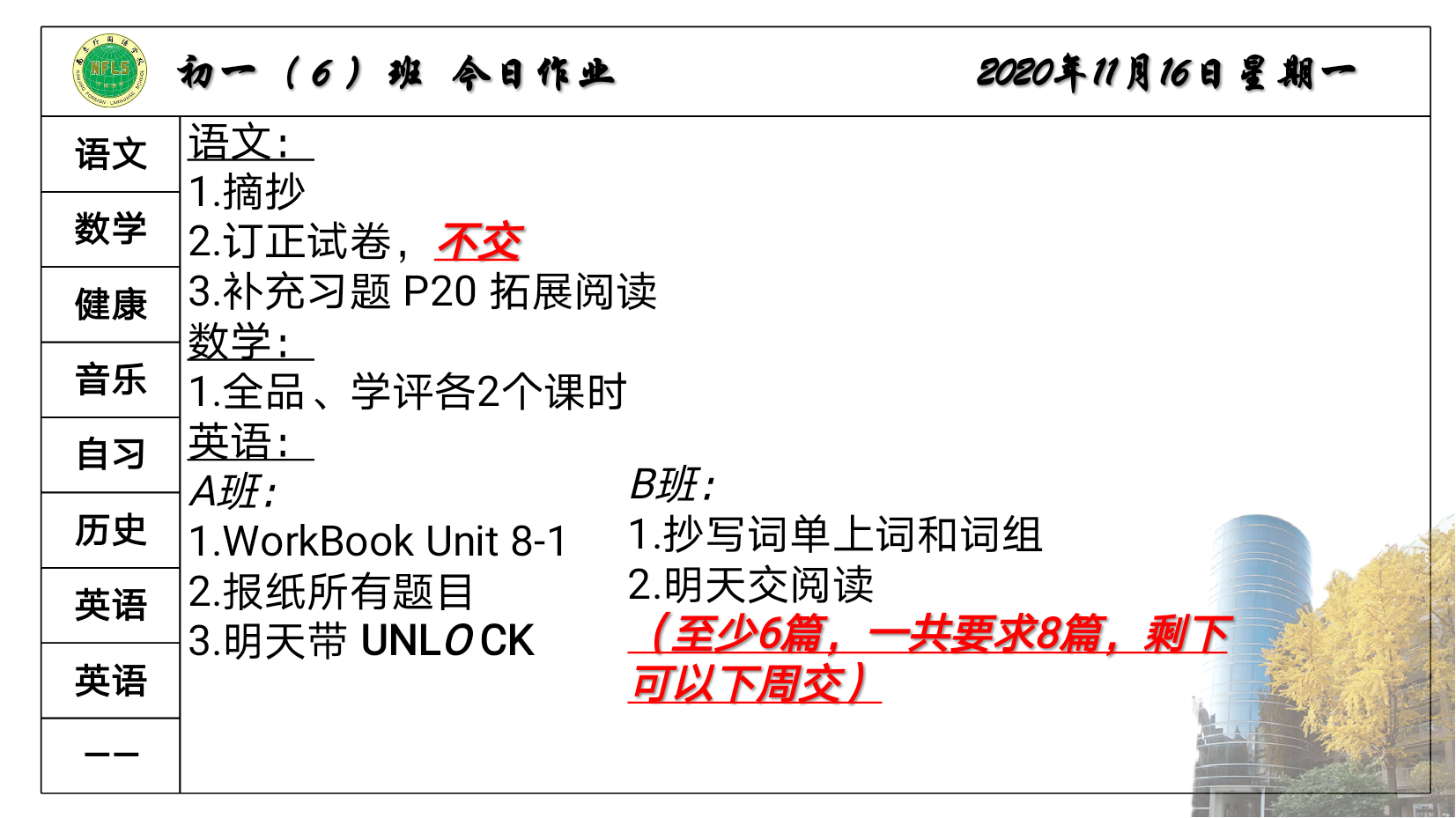 Daily Board 2020/11/16