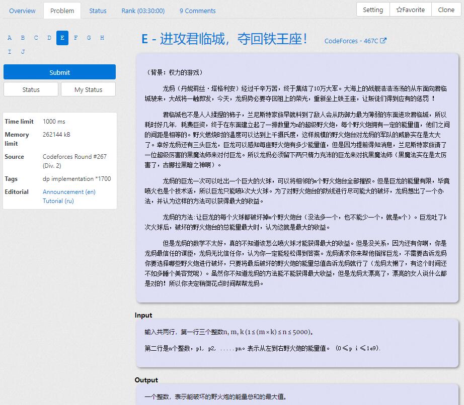 努力思考了一下题解,意思应该是最大收益要么是前i个中霍霍k段的最大效益,要么是霍霍末m个与前i-m个中霍霍k-1段的最大效益。也就是说从头到尾不必考虑所有状态,只用考虑从最小值到 i,j 时的最大收益,递推完事。不过我怕爆栈,还是用循环吧。