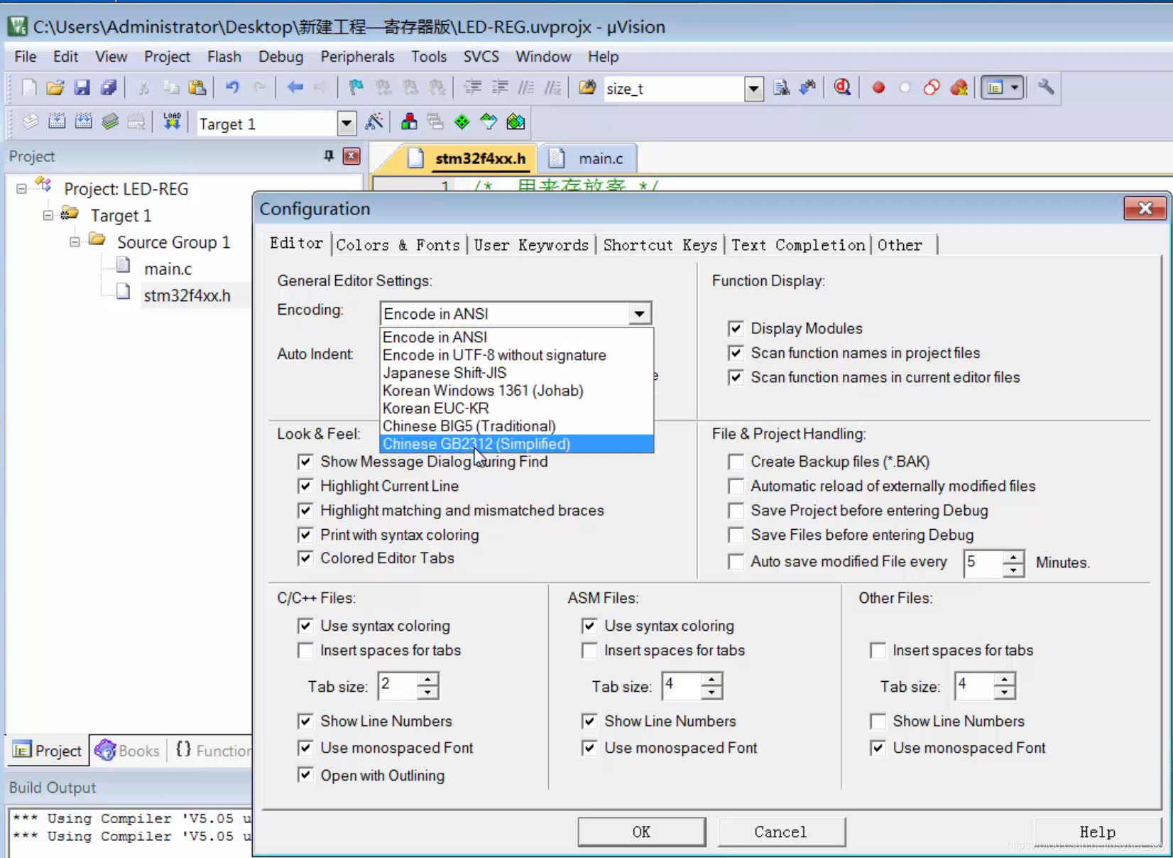 //Keil 中1个汉字是双字节,删除需要按2次,如下操作可以解决: