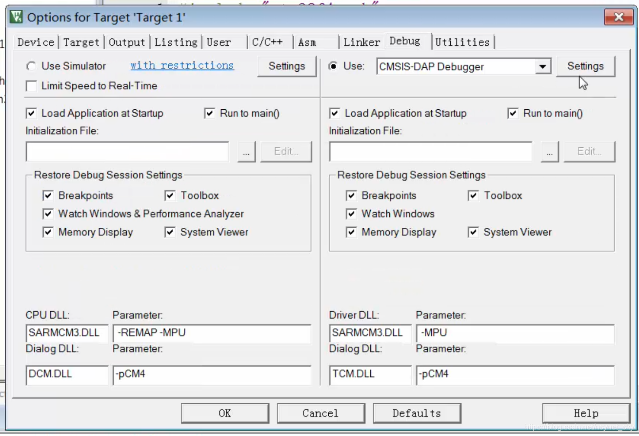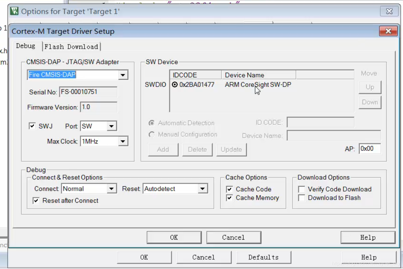 //野火F407开发板的DAP仿真器配置:
