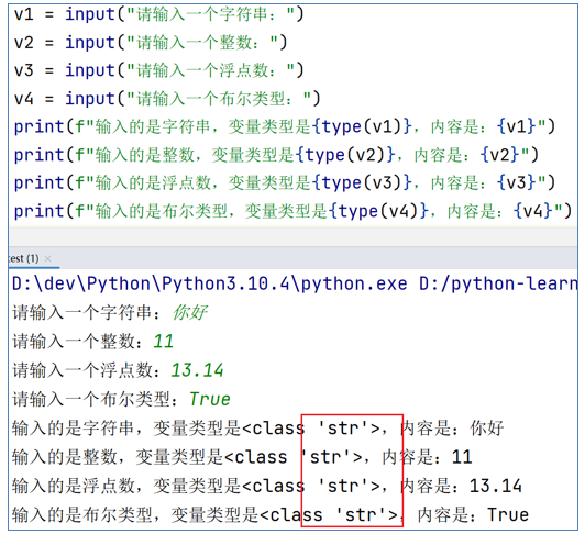 我们前面学习过print语句(函数),可以完成将内容(字面量、变量等)输出到屏幕上。 在Python中,与之对应的还有一个input语句,用来获取键盘输入。 数据输出:print 数据输入:input 使用上也非常简单: 使用input()语句可以从键盘获取输入 使用一个变量接收(存储)input语句获取的键盘输入数据即可