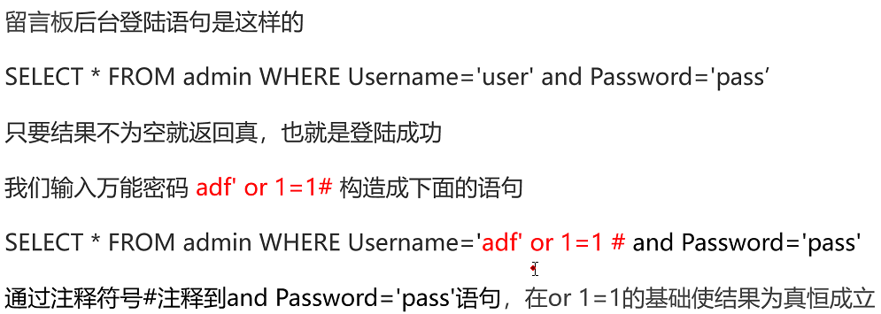 1. 万能密码原理(注释符:“#”、“--+”)