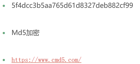密码一般采用MD5加密,注意观察,MD5加密的密文一般为16位或32位,有时遇到40位,可以尝试去掉前四位和后四位,或者直接去掉前八位或后八位,或者前三位后五位,以此类推。