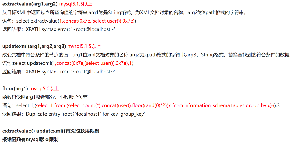 ①mysql5.1.5以下版本无法进行报错注入