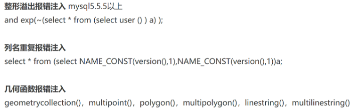 ②其他类型的报错注入: