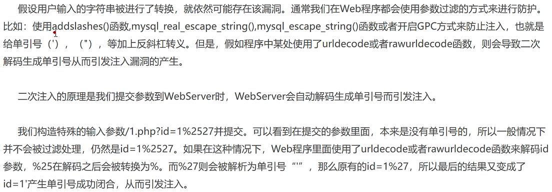 二次排序注入也称为存储型的注入,就是将可能导致sql 注入的字符先存入到数据库中,当再次调用这个恶意构造的字符时,就可以触发 sql 注入。