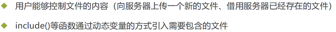 在通过PHP相应函数(比如include())引入文件时,由于传入的文件名没有经过合理的校验,从而操作了预想之外的文件,就可能导致意外的文件泄露甚至恶意的代码注入(将包含的内容当成PHP代码来执行)。