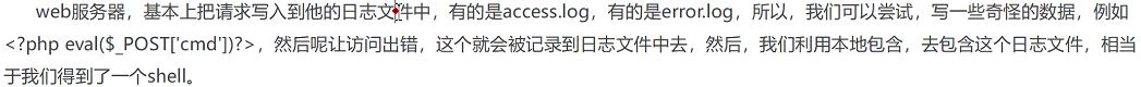 access.log文件,先将参数写成一句话木马形式使其存入日志文件,若特殊符号被浏览器转码,通过抓包将转码的符号修改回来