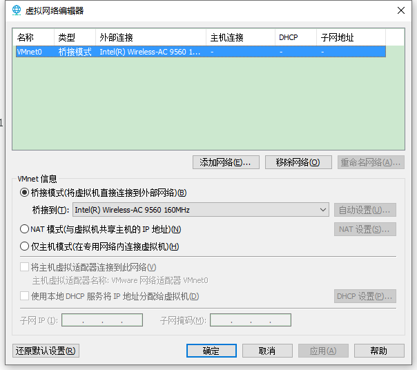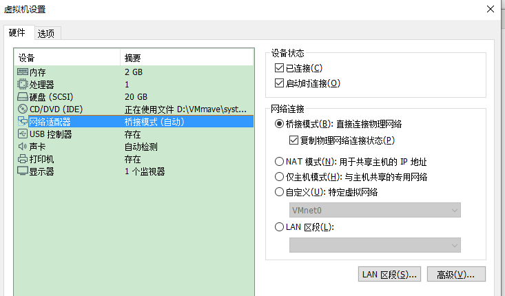 其中VMnet信息选择桥接模式,具体桥街到你自己使用的网卡。