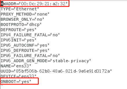 其中HWADDR,为ifconfig查看到的ens33网口的物理地址