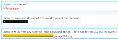 jMP3是一个采用jQuery开发的JavaScript MP3插放器,提供一种可以在页面上直接播放MP3的简便方式。