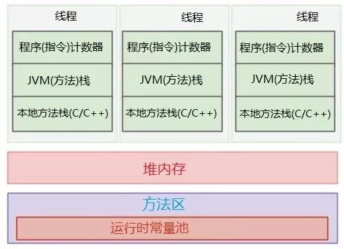 下图显示了JVM(Java虚拟机)运行时总体的数据区域划分