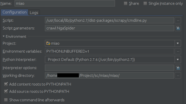 Script填你的scrapy的cmdline.py路径,比如我的是