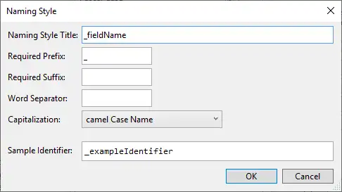 默认情况下,VS 智能补全对类的私有字段使用的是 camelCase 命名风格,但有很多人更习惯使用 _camelCase 风格对私有字段命名,类的私有字段前面加 _ 前缀有助于和本地变量进行区分。我们可以通过设置来改变默认的 camelCase 命名行为,具体设置步骤如下。