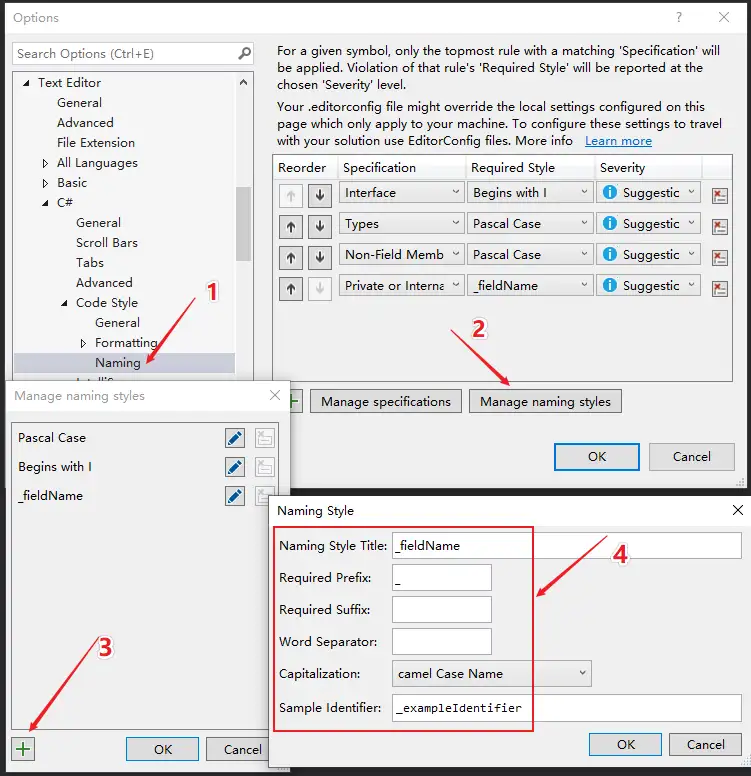 上面的添加 Naming Style 步骤(第 4 步)很重要,为了让你们看清楚些,请参照如下单独放大的截图: