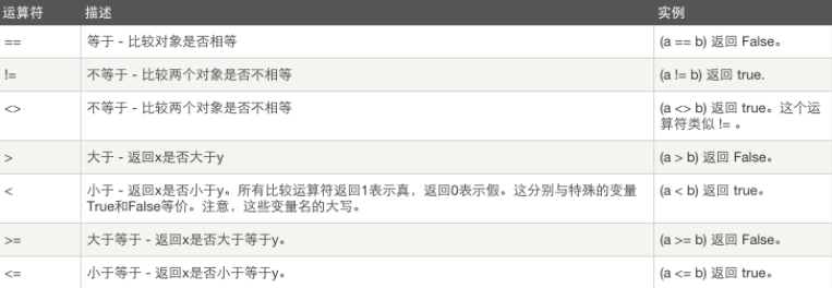 # 条件成立就是True,不成立就是False >>>a = 1 >>>b = 2 >>>a > b False >>> >>>a < b True