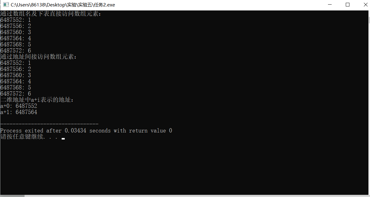 printf("二维地址中a+i表示的地址:\n");
