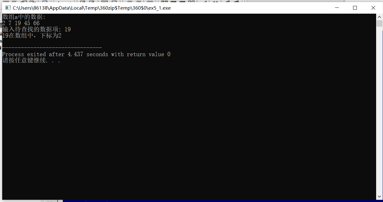 printf("%d在数组中,下标为%d\n", key, index);