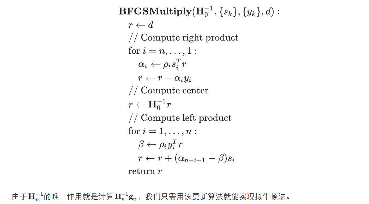 BFGS拟牛顿近似算法虽然免去了计算Hessian矩阵的烦恼,但是我们仍然需要保存每次迭代的\(\vec{s}_n\)和\(\vec{y}_n\)的历史值。这依然没有减轻内存负担,要知道我们选用拟牛顿法的初衷就是减小内存占用。