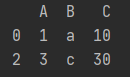 import pandas as pd # 创建示例 DataFrame data = { 'A': [1, 2, 3], 'B': ['a', 'b', 'c'], 'C': [10, 20, 30] } df = pd.DataFrame(data) # 使用 drop() 方法删除索引为 1 的行 df = df.drop(1, axis=0) print(df)