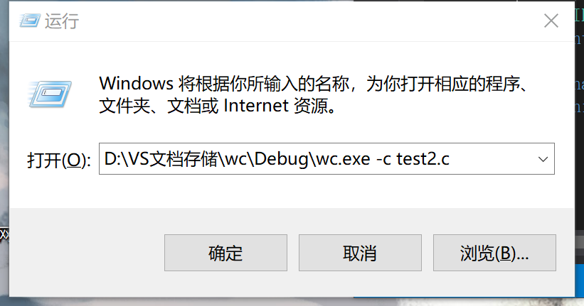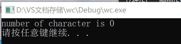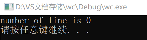 输入:D:\VS文档存储\wc\Debug\wc.exe -c test2.c