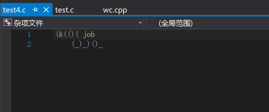 输入:D:\VS文档存储\wc\Debug\wc.exe -l test4.c