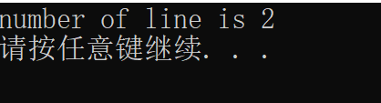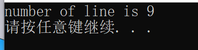 //计算行数 void countline(char *filename) { if (countcharacter(filename) == 0) { printf("number of line is 0\n"); return; } FILE *fp = fopen(filename, "r"); int count = 1, i; char str[20]; while (fgets(str, sizeof(str), fp)) { i = 1; for (i = 0; i<strlen(str); i++) { if (str[i] < 0) continue; if (str[i] == '\n') count++; } } fclose(fp); printf("number of line is %d\n", count); }