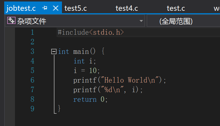 输入:D:\VS文档存储\wc\Debug\wc.exe -l test3.c