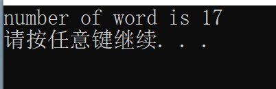 //计算单词数 void countword(char *filename) { FILE *fp = fopen(filename, "r"); int count, tag, i; count = 0; tag = 0; char str[20]; while (fgets(str, sizeof(str), fp)) { for (i = 0; i<strlen(str); i++) { if (str[i] < 0) continue; if (isalpha(str[i]) && tag == 0) { count++; tag = 1; } else if (isalpha(str[i]) == 0) { tag = 0; } } } fclose(fp); printf("number of word is %d\n", count); }